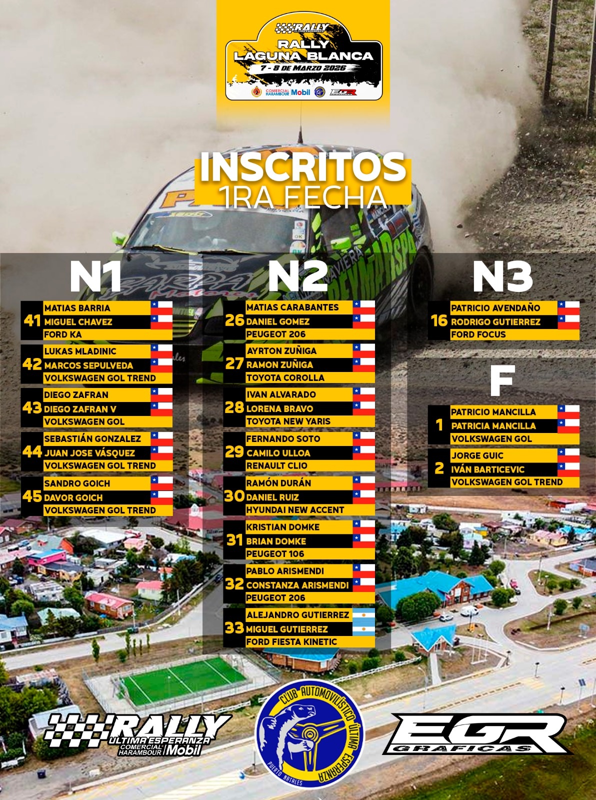 15 unidades animaran la primera fecha del campeonato de rally de Ultima Esperanza en Laguna Blanca.