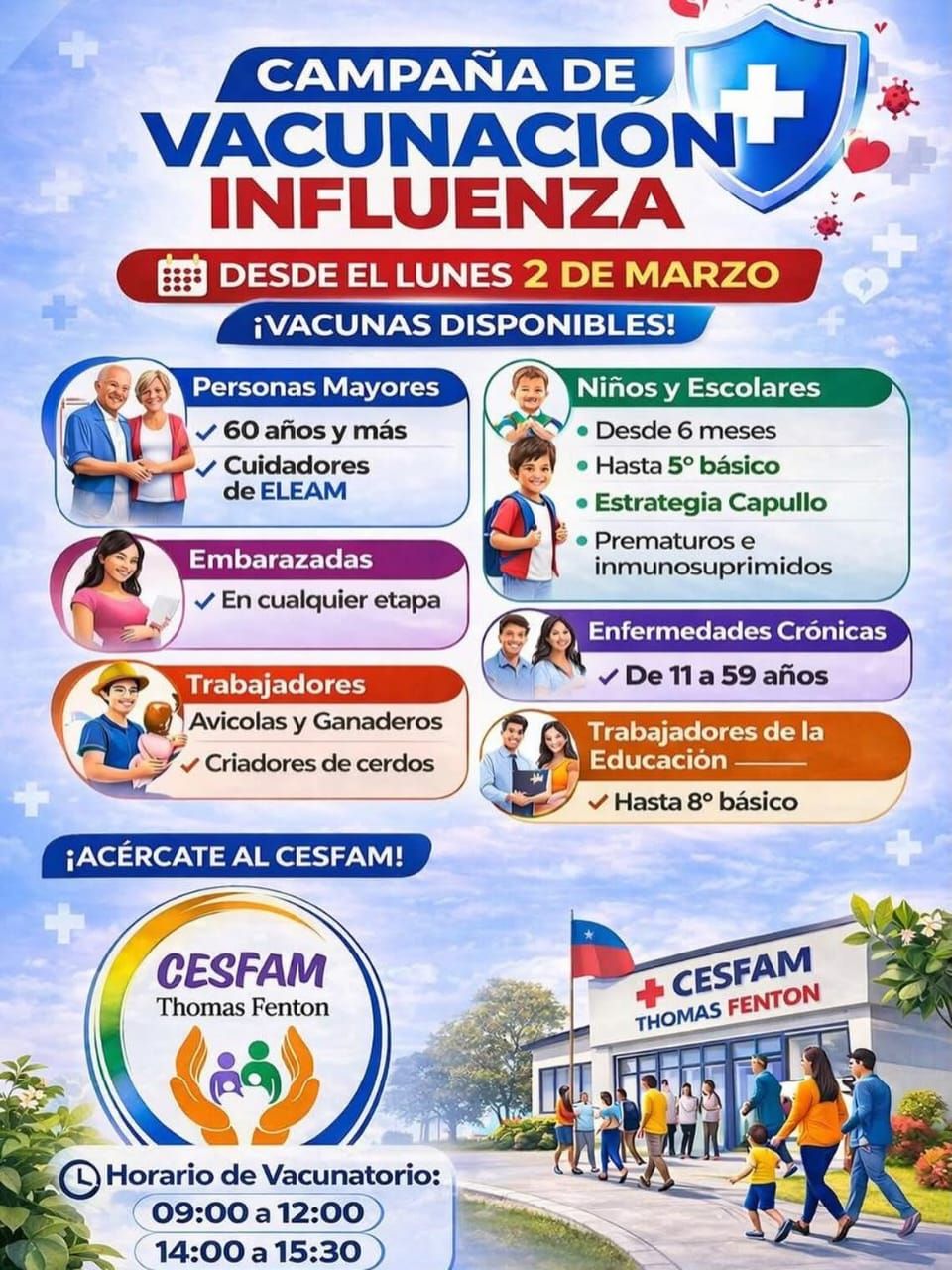 CESFAM Thomas Fenton inicia campaña de vacunación contra la influenza desde el 2 de marzo