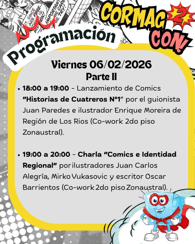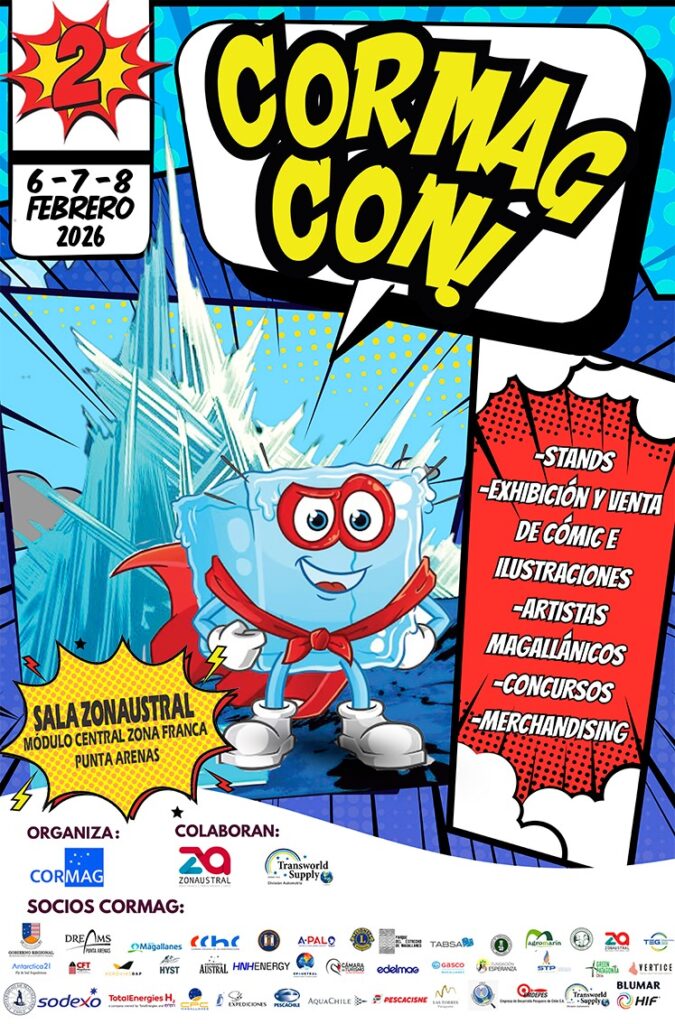Tras el exitoso desarrollo del Encuentro de Cómics e Ilustradores “Chumanguito 2025”, realizado entre el 6 y el 9 de febrero de 2025 en la Zonaustral Punta Arenas, la Corporación de Desarrollo de Magallanes y de la Antártica Chilena (C O R M A G) proyecta y consolida esta iniciativa cultural con la realización del 2° Encuentro de Cómics e Ilustradores “CORMAGCON 2026”, reafirmando su compromiso con el fortalecimiento de las industrias creativas en el extremo sur de Chile.La primera versión reunió a 17 artistas locales, tiendas especializadas y actores del sector cultural, consolidándose como un espacio de difusión, encuentro y valorización del cómic y la ilustración como expresiones artísticas vinculadas a la identidad magallánica. Sus positivos resultados sentaron las bases para ampliar el alcance, la participación y la proyección de esta segunda edición.Para CORMAG-CON 2026, la convocatoria superó ampliamente las expectativas, recibiendo a 50 artistas, ilustradores e historietistas, quienes participarán en una instancia de exhibición, creación y colaboración en torno a las artes gráficas y las narrativas visuales. Esta iniciativa busca diversificar la matriz productiva regional, visibilizar el talento creativo local y demostrar que, incluso desde territorios extremos, es posible generar valor cultural, económico y exportable.El eje temático de esta versión será “La Antártica como fuente de inspiración”, relevando el valor simbólico, cultural y ambiental del territorio austral como motor creativo. El encuentro promueve una participación inclusiva, convocando tanto a artistas consolidados como a nuevos talentos, y reconociendo la diversidad de estilos, técnicas y miradas presentes en la región.Durante las tres jornadas del encuentro, los 50 ilustradores se desplegarán en distintos espacios del módulo central de la Zona Franca, con 25 artistas en la sala Zonaustral (frente a la pista de patinaje) y 25 artistas en tiendas vinculadas a las industrias creativas — JordanKids, Imovies, La Fortaleza, La Comarca, Entrepáginas y Panini—, fortaleciendo el vínculo entre creación artística, comercio y público. A ello se suma una destacada muestra de 25 obras de técnica tradicional del reconocido artista magallánico Juan Carlos Alegría (Chico Alegría).El programa contempla además charlas, talleres, lanzamientos editoriales y actividades familiares, entre las que destacan la inauguración con desfile de cosplayers kids, recorridos artísticos por el recinto, el lanzamiento del cómic Historietas de Cuatreros y la charla “Cómics e Identidad Regional”, junto a espacios formativos abiertos a la comunidad.La entrada será gratuita y el evento se desarrollará entre las 10:00 y las 19:00 horas.Desde C O R M A G, se releva que las industrias creativas representan una oportunidad estratégica para territorios como Magallanes, permitiendo generar nuevos públicos, atraer ingresos, fomentar la asociatividad entre artistas y demostrar que el talento regional puede proyectarse más allá de las fronteras. En este sentido, el encuentro contará con la participación de artistas regionales, nacionales e internacionales, y se está difundiendo activamente en Río Gallegos, Río Grande y Ushuaia, fortaleciendo la integración cultural austral y el impacto positivo en el comercio local, el turismo y la economía regional.CORMAG-CON 2026 busca consolidarse como un referente cultural del extremo sur de Chile, demostrando que desde Magallanes también se crea, se innova y se exporta talento, posicionando a la industria creativa como un pilar de desarrollo cultural y económico para la región.