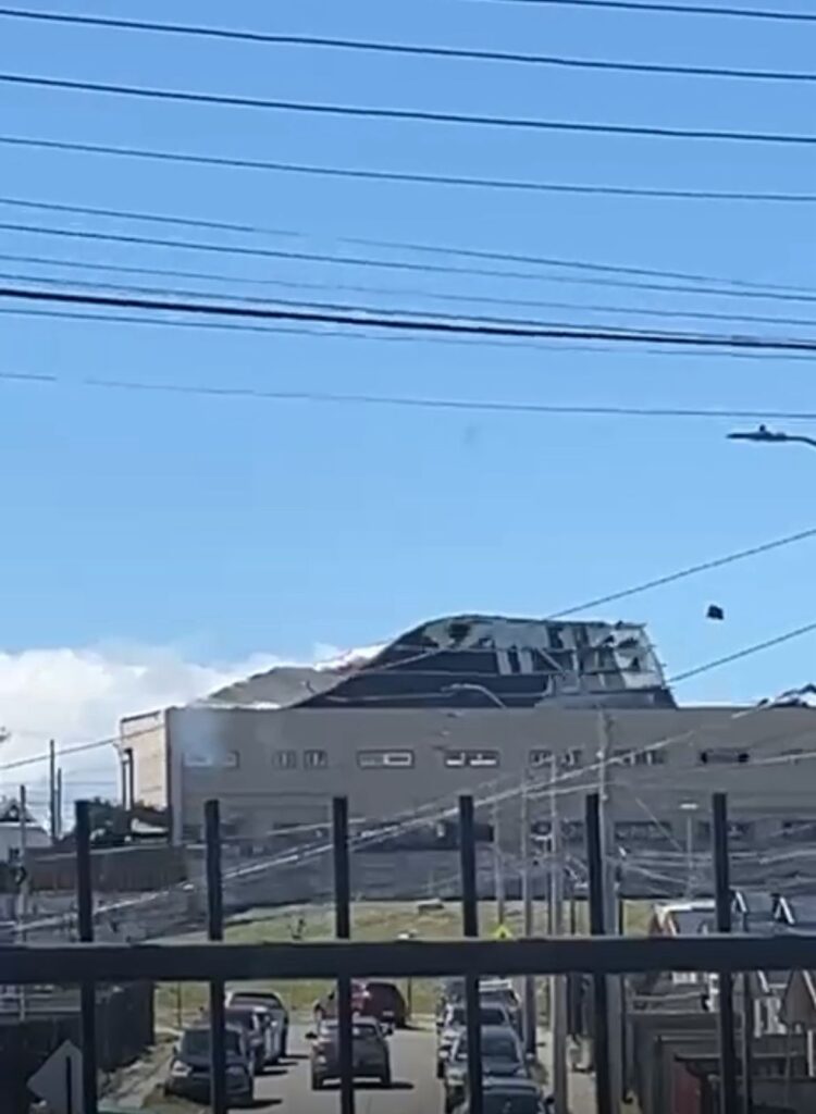 Un desprendimiento parcial de la techumbre de una infraestructura ubicada en el sector del camino al Andino, en la ciudad de Punta Arenas, se registró durante las últimas horas, presuntamente a raíz de las intensas ráfagas de viento que han afectado a la capital regional.