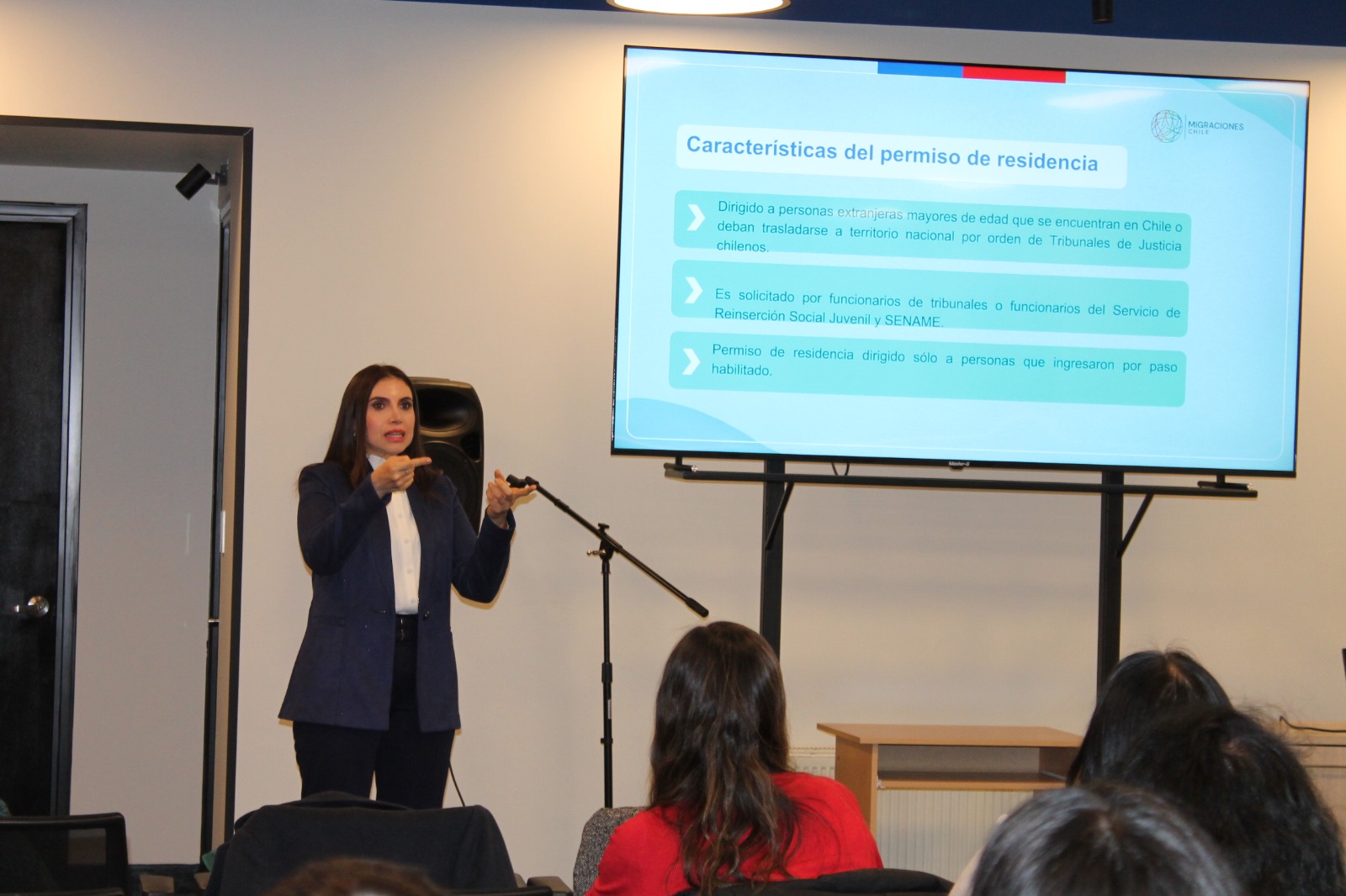 La jornada contó con la participación de la abogada del Servicio de Migraciones, Danna Garbarino, y de la profesional del INDH, Marlis Saldivia, además de la abogada y jefa de la Unidad de Coordinación Jurídica del Servicio de Reinserción Social Juvenil, Lorena Pereira. Las expositoras entregaron contenidos a equipos jurídicos, encargados de medidas y sanciones, profesionales de redes, tutores, directivos del Centro de Cumplimiento Juvenil, de la Dirección Regional y del organismo acreditado Corporación Opción.