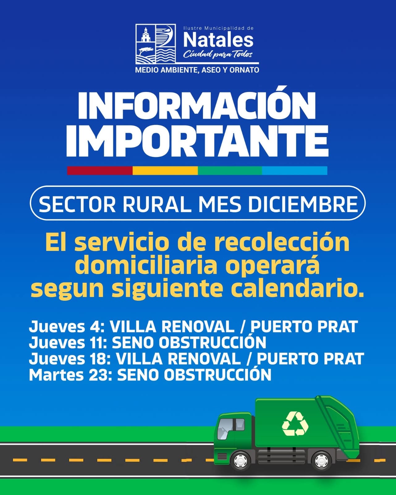 El servicio de recolección domiciliaria operará según el siguiente calendario: