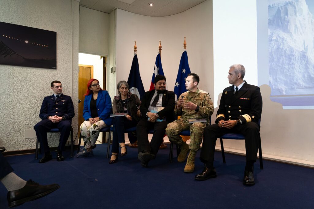 La presentación incluyó un panel de conversación integrado por María Pastora Sandoval, periodista del programa El Mirador Antártico; Tania Pivcevic, representante de los operadores turísticos antárticos de Magallanes; Valentín Aguilera, seremi de Educación; el teniente Gustavo Atala, de la IVª Brigada de la Fuerza Aérea de Chile; el almirante Juan Soto, comandante en jefe de la Tercera Zona Naval; y el mayor Elías Figueroa, del Centro de Asuntos Antárticos del Ejército.