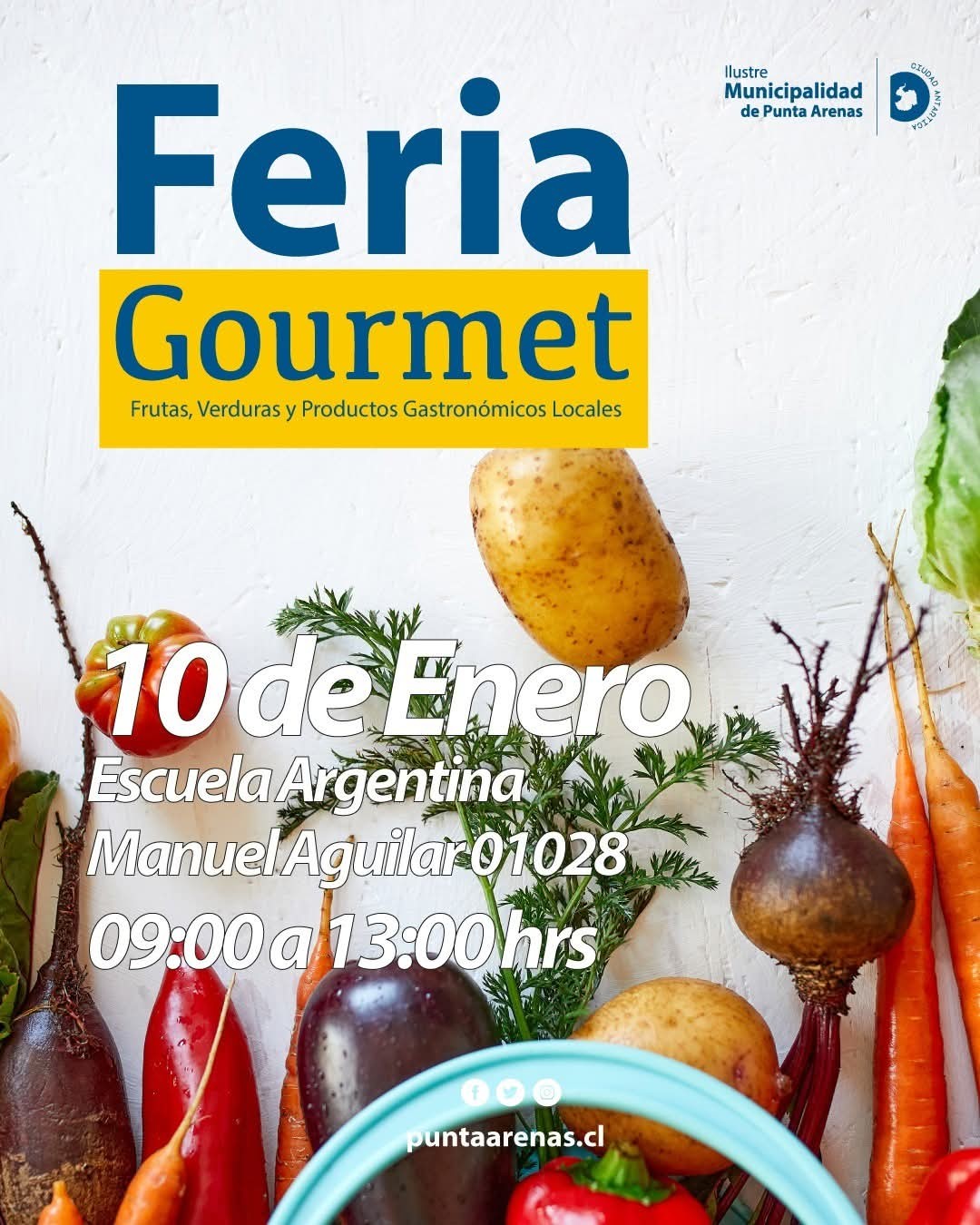 La Ilustre Municipalidad de Punta Arenas anunció la realización de una nueva Feria Gourmet, instancia destinada a promover el consumo de frutas, verduras y productos gastronómicos locales, fortaleciendo el comercio de pequeños productores y emprendedores de la zona.