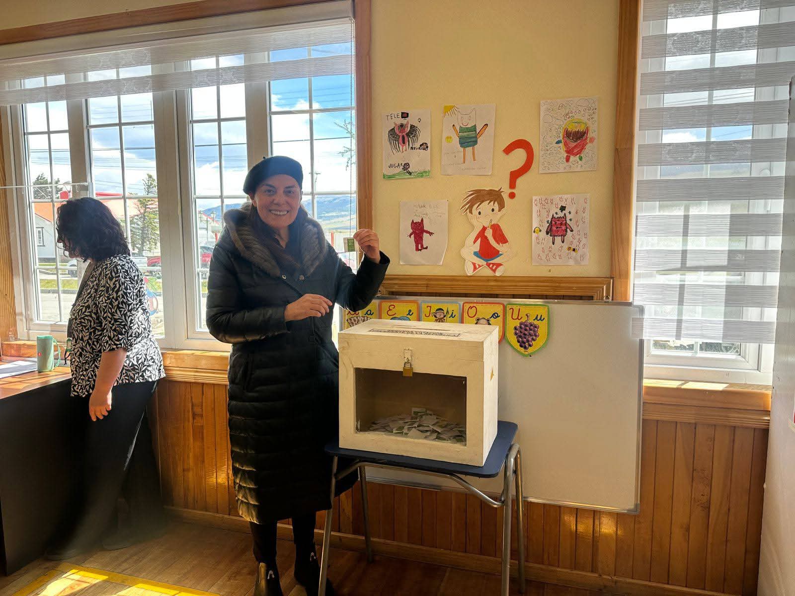 Este domingo por la mañana, la alcaldesa de la comuna, Anahí Cárdenas Rodríguez, participó activamente en las elecciones presidenciales al emitir su voto en el establecimiento educativo Escuela Rural Ramón Serrano Montaner, ubicado en Villa Cerro Castillo.