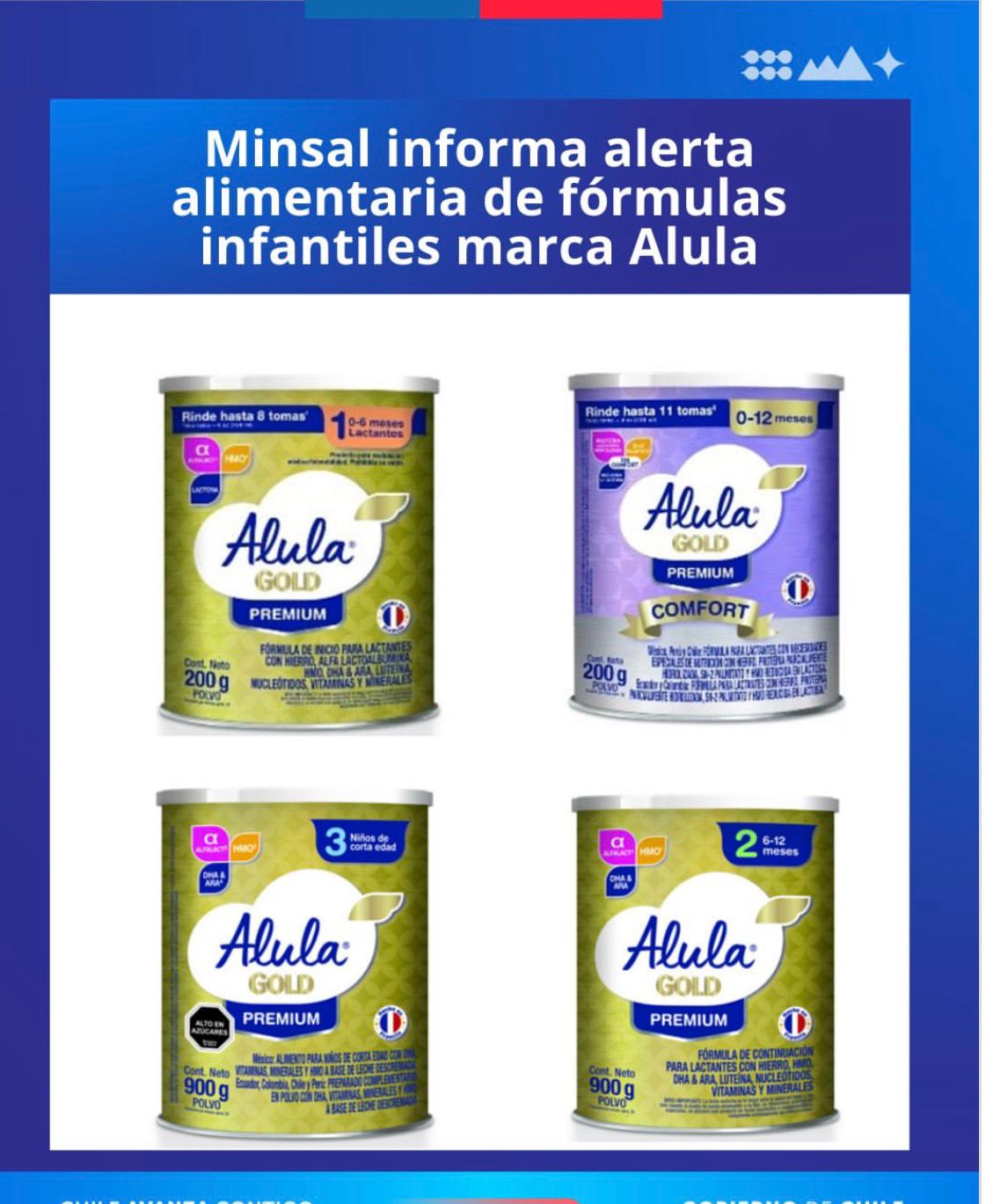 Minsal ordena no consumir fórmulas infantiles Alula Gold por riesgo de intoxicación alimentaria