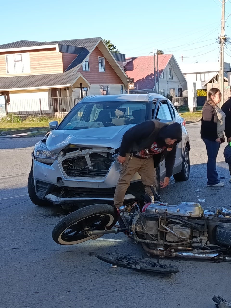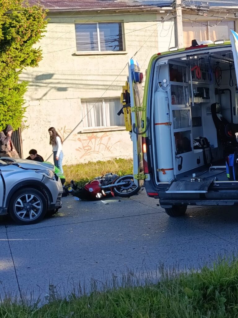 Durante la tarde de este día se registró una colisión entre un vehículo menor y una motocicleta en la ciudad de Punta Arenas, dejando como resultado a un motociclista lesionado.