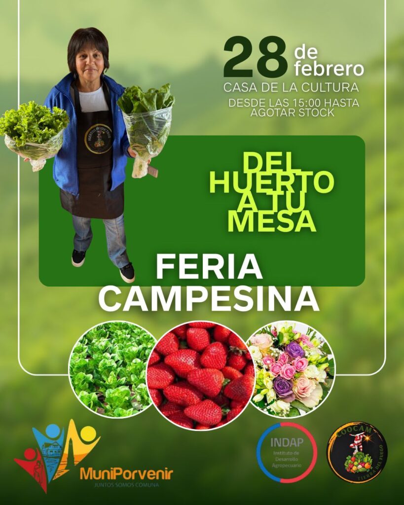 La comunidad de Porvenir podrá disfrutar este 28 de febrero de una nueva edición de la feria campesina “Del Huerto a Tu Mesa”, una instancia que busca acercar los productos locales directamente a las familias de la comuna.