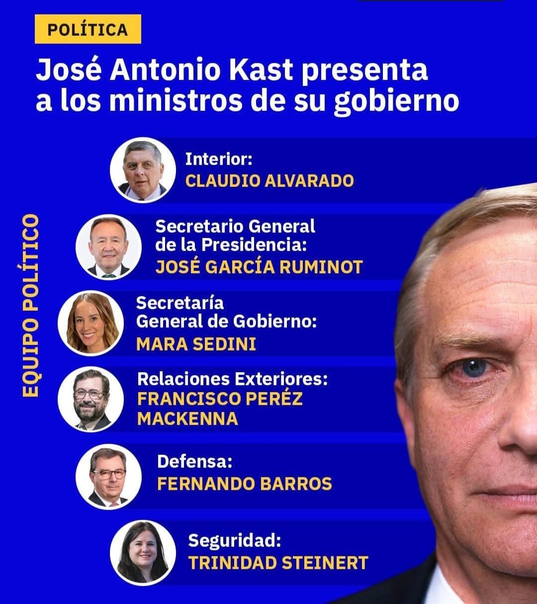 El presidente electo de Chile, José Antonio Kast, dio a conocer oficialmente la conformación de su gabinete ministerial, marcando el inicio de una nueva etapa política y administrativa para el país, a pocas semanas de asumir el mando del Ejecutivo.