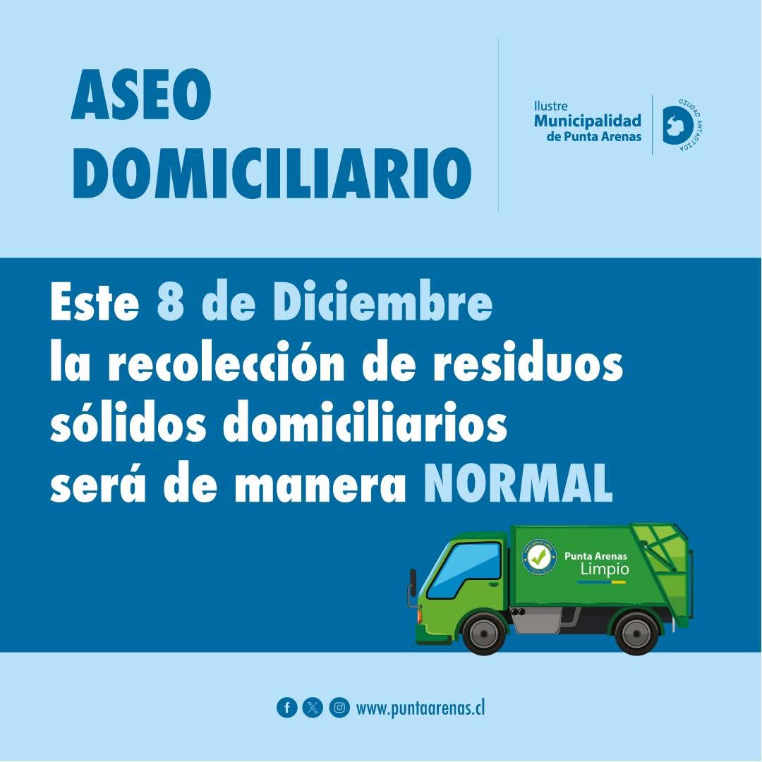 Punta Arenas : RECOLECCIÓN DE RESIDUOS – LUNES 8 DE NOVIEMBRE