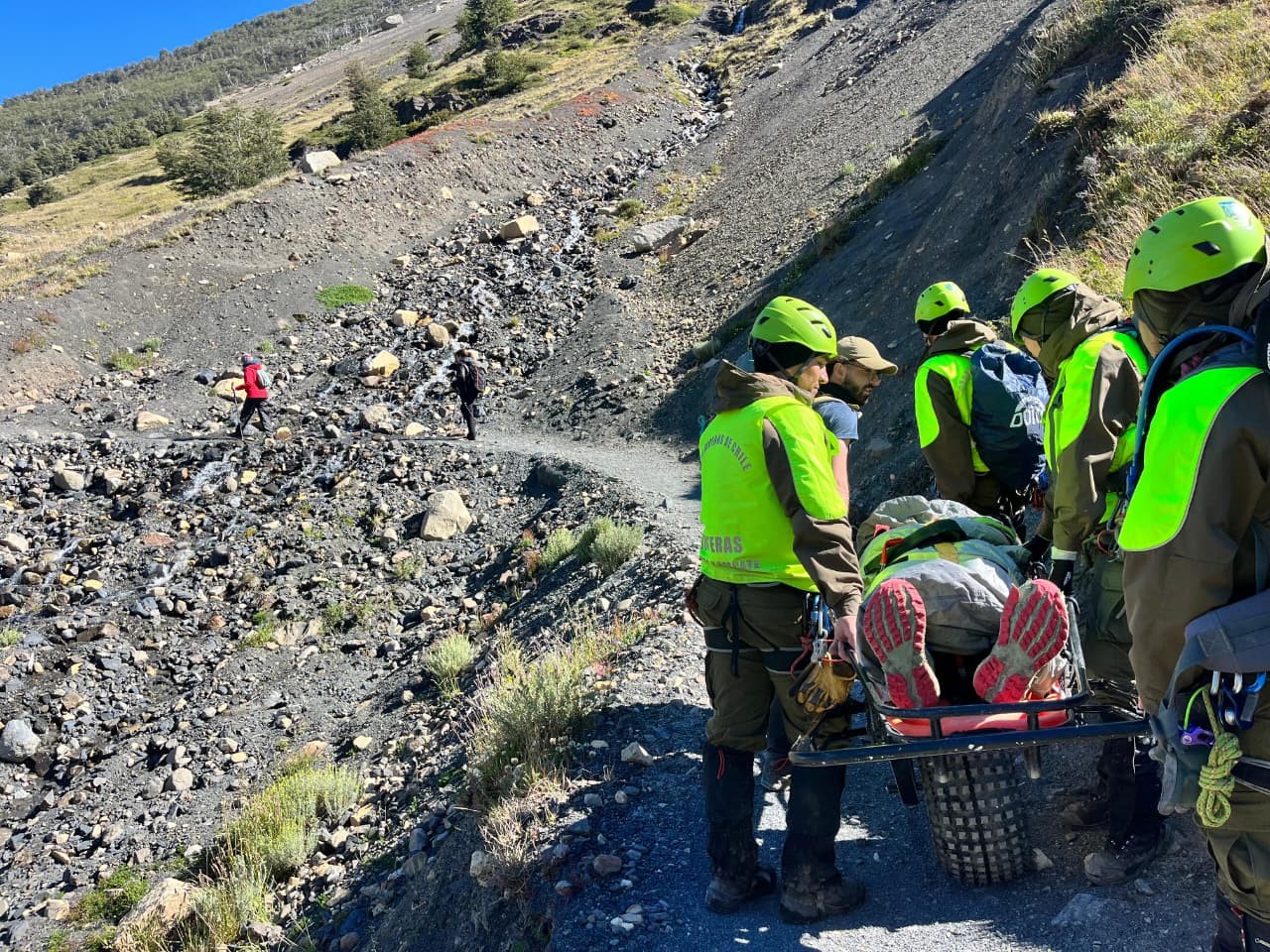 Durante el recorrido, la mujer sufrió una caída, golpeándose fuertemente la pelvis izquierda, lo que le provocó una luxación, lesión que le impidió continuar el trayecto por sus propios medios. Ante esta situación, se dio aviso a las autoridades, activándose un operativo de rescate por parte de Carabineros de Chile, con apoyo de personal especializado en montaña y frontera de la dotación del Parque Nacional Torres del Paine.