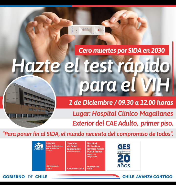 El tecnólogo médico del Hospital Clínico de Magallanes, Gustavo Leal, reiteró la relevancia de conocer el estado serológico, considerando que el VIH puede no presentar síntomas durante años. Recordó que el establecimiento ofrece testeo voluntario y gratuito, de lunes a viernes entre 08:00 y 12:00 horas, en infectología o UNACESS. Toda muestra reactiva es enviada para confirmación al Instituto de Salud Pública (ISP).