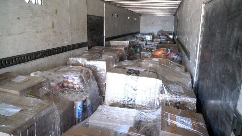 El camión transporta un total de 26 pallets, equivalentes a cerca de 60 mil unidades de diversos productos de primera necesidad, entre ellos alimentos no perecibles, alimentos para mascotas, pañales, agua y otros insumos, todos reunidos gracias a la solidaridad de la comunidad y de distintos municipios de la región.