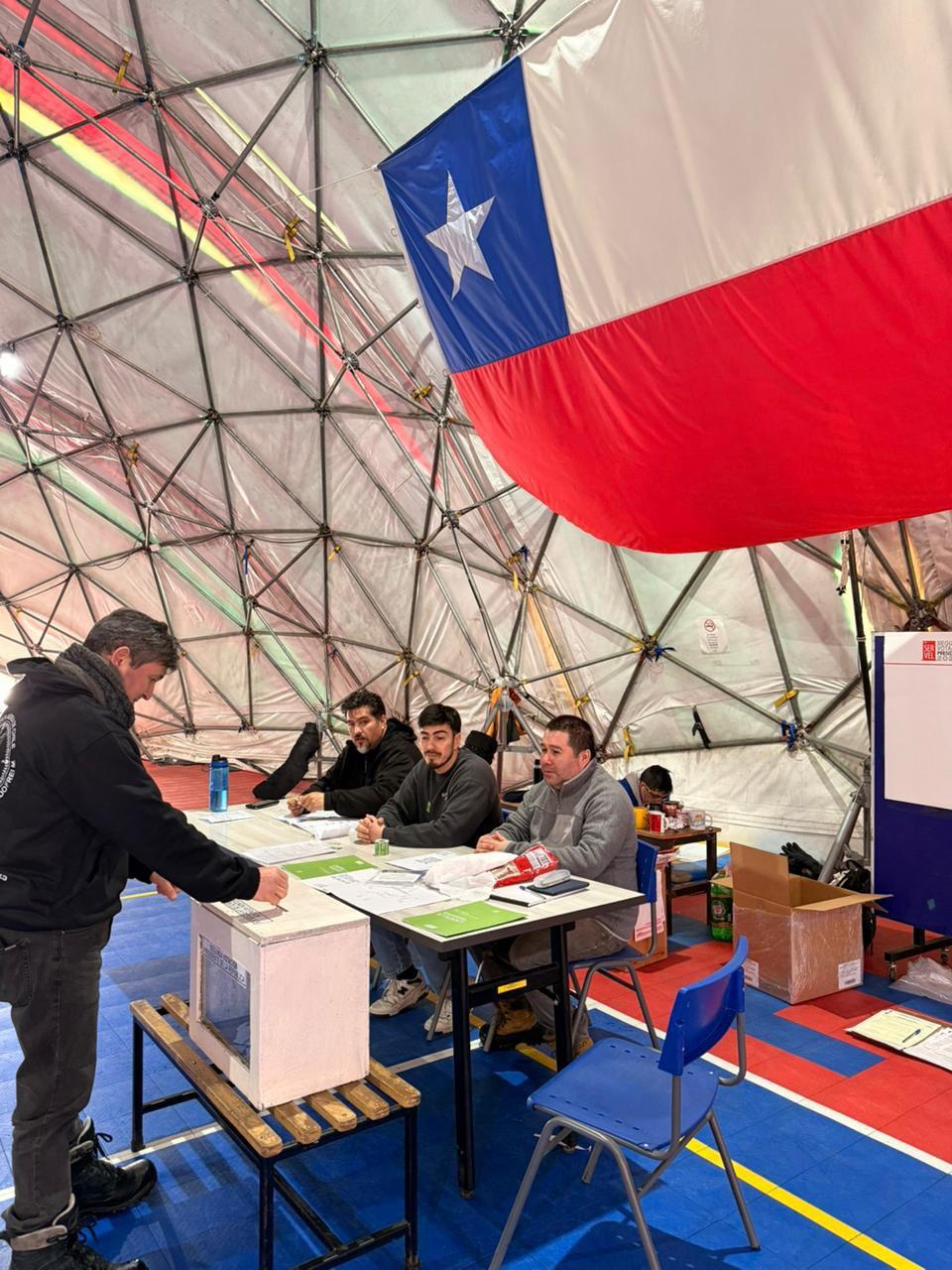 A pesar de las difíciles condiciones meteorológicas que se presentaron a primeras horas de la jornada, con una tormenta de nieve afectando la región, el proceso electoral en la Antártica chilena continúa sin contratiempos. La mesa de votación en la Base Eduardo Frei Montalva, ubicada en Villa Las Estrellas, fue debidamente constituida, permitiendo que los 195 electores del padrón puedan ejercer su derecho al voto.