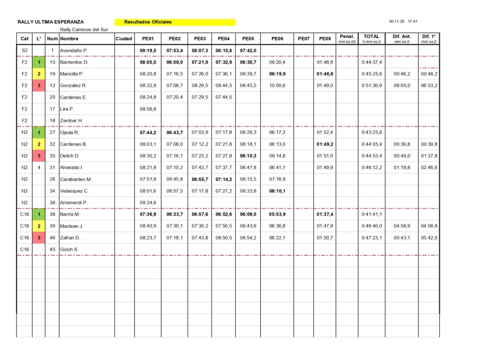 Como se presentaba el panorama terminado la jornada del sábado era previsible que el campeonato en las categorías estaba ya sentenciado, solo faltaba el resultado y de cada prueba para sumar el puntaje que otorga cada prime.